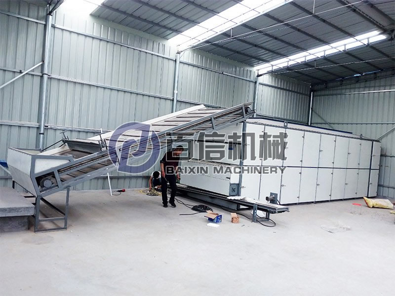 帶式烘干機(jī)是利用鋼網(wǎng)作為傳輸帶運(yùn)載物料進(jìn)行連續(xù)烘干的干燥設(shè)備,適宜流水作業(yè)。由于傳輸帶是網(wǎng)狀,所以對(duì)烘干規(guī)則或不規(guī)則各種如:水果、蔬菜、藥材、農(nóng)副產(chǎn)品等加工業(yè)之片狀、條狀、塊狀和顆粒物料的脫水干燥作業(yè),可以單獨(dú)使用,也可以和其他設(shè)備配套使用。