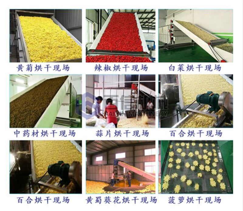 百信多層連續(xù)式烘干機脫水干燥迅速, 操作方便,效率運行。能滿足大批量連續(xù)生產的需求,網帶式干燥設備廣泛應用于食品(如面條、面皮)、干果(大棗、巴旦木、腰果、開心果)、花茶(玫瑰花、紅薯、金銀花、山楂花)、農副產品(如玉米、紅薯烘干袪潮)、脫水蔬菜(如大蒜、紅薯、紅薯、辣根、洋蔥、白菜干、生姜、小香蔥、辣根、菠菜)、瓜果(如紅薯、薯片、紅薯、葡萄干、哈密瓜)、中草藥、(連翹、黃蜀葵、枸杞、)水產品、土特產品、飼料及化工原料等加工之片狀、條狀、塊狀和顆粒狀物料的脫水干燥作業(yè)。
